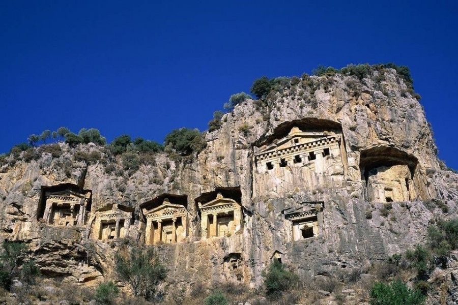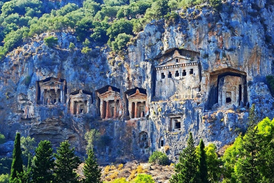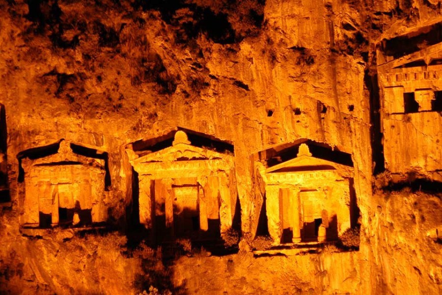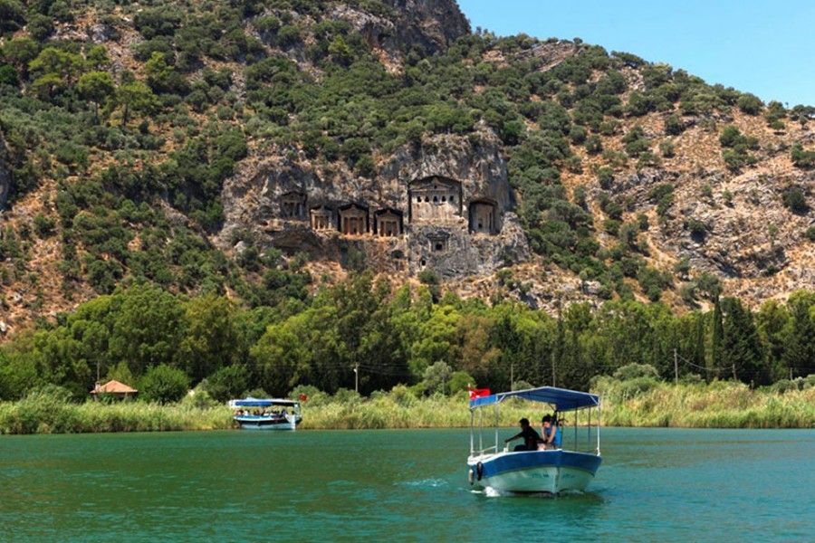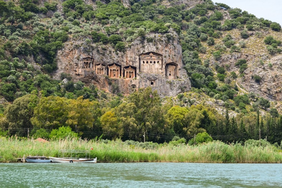 Deze graven zijn de laatste rustplaatsen van de koningen van Caunos en zijn uitgehouwen in de rotsen in de Lycische stijl. Er zijn twee soorten graven in Dalyan: de eenvoudige graven en de veel grotere tempelgraven. Veel van de graven werden gebouwd met een valse muur, waarachter verborgen schatten verborgen waren om grafrovers voor de gek te houden. Deze strategie werkte niet en de graven zijn geplunderd. Er zijn vergelijkbare rotsgraven langs de Lycische kust, maar de meest goed bewaard gebleven zijn te vinden in Dalyan.